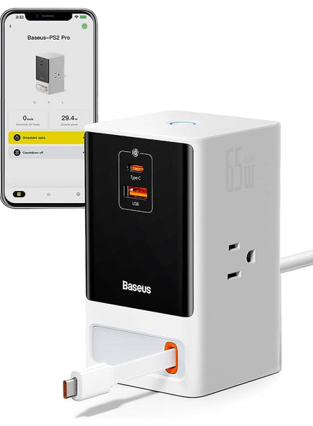 Built-in Retractable USB-C Cable: With a built-in retractable 3ft, 65W Type-C cable, the PowerCombo charging hub supports rapid charging for laptops and smartphones, boasting a lifespan of over 10 years and more than 10,000 retractions.
