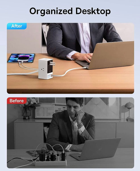 Better Choice: The PowerCombo charging hub replaces the need for a 5-port power strip, 3 USB chargers, and features a 65W fast-charging USB-C cable, helping you save money and maintain an organized workspace.