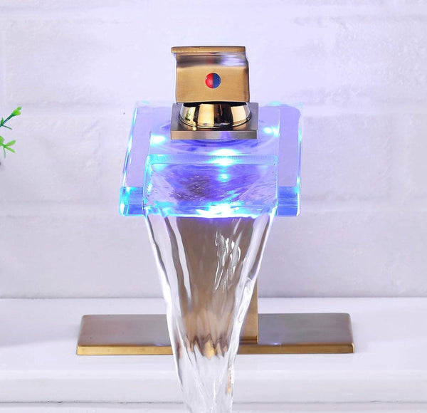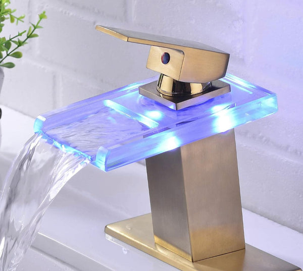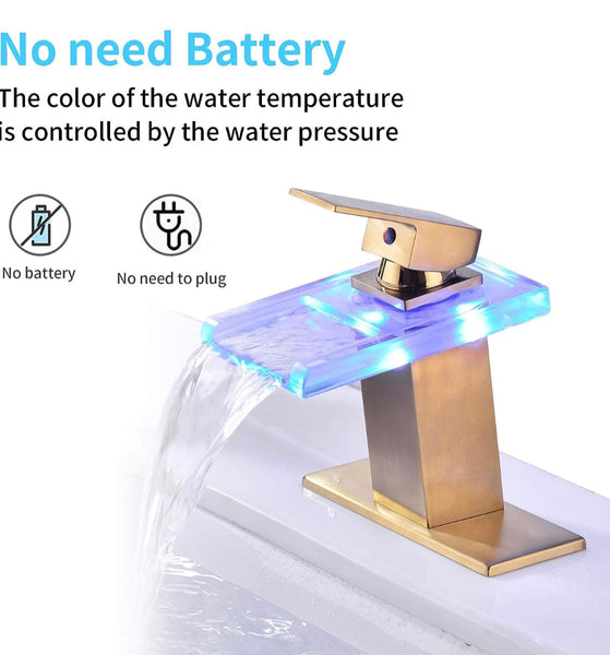 [Faucet with Waterfall Spout and LED] The Waterfall Glass Spout design lends a touch of contemporary modern fashion to this faucet. Elevate your bathroom's elegance without sacrificing luxury, infusing more vibrancy and enjoyment into your bathing experience.
