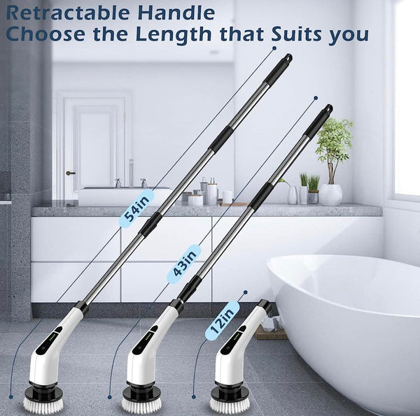【Versatile and Cordless Design】: Our latest brush iteration features three adjustable sizes and lengths: 12 inches, 43 inches, and 54 inches. Altering the length is effortless—simply rotate and extend the handle. The handle and extension rod can also be detached and reattached. This innovative design enables you to clean every nook and cranny without straining your back or knees. It's particularly friendly to seniors and those with back concerns, significantly saving time and effort.