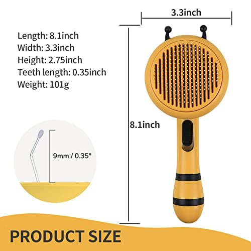 - 【Self Cleaning Hair Brush】Our cat brush for shedding is designed with one-click cleaning button, when you press the button in cat comb, the plastic plate in cat hair brush will pop out, and the floating hair will be separated from the steel needle automatically. You can remove the hair shed by pets from the pet brush easily. And the fur will fall out in one piece to avoid flying all over the air.