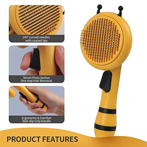 - 【Unique and Cute Design】LONGYUEYC cat brushes for indoor cats has beautiful Little Bee appearance design, we believe that this cute shedding brush can interest your pets and make them fall in love combing. Our undercoat brush for dogs is suitable for both long haired and short haired dogs & cats and other animals.
