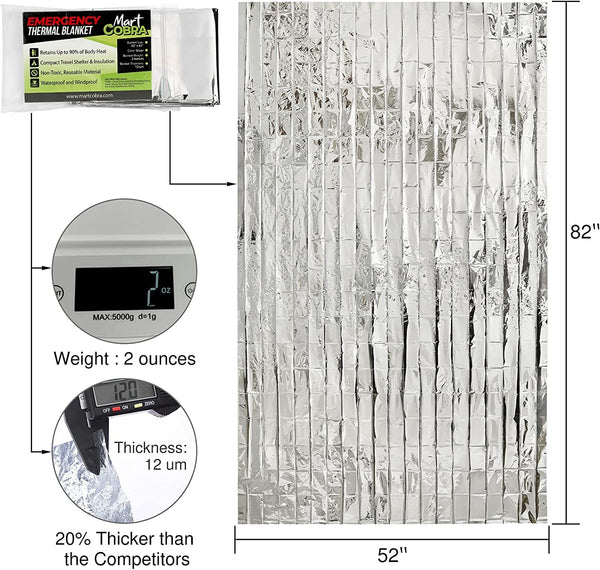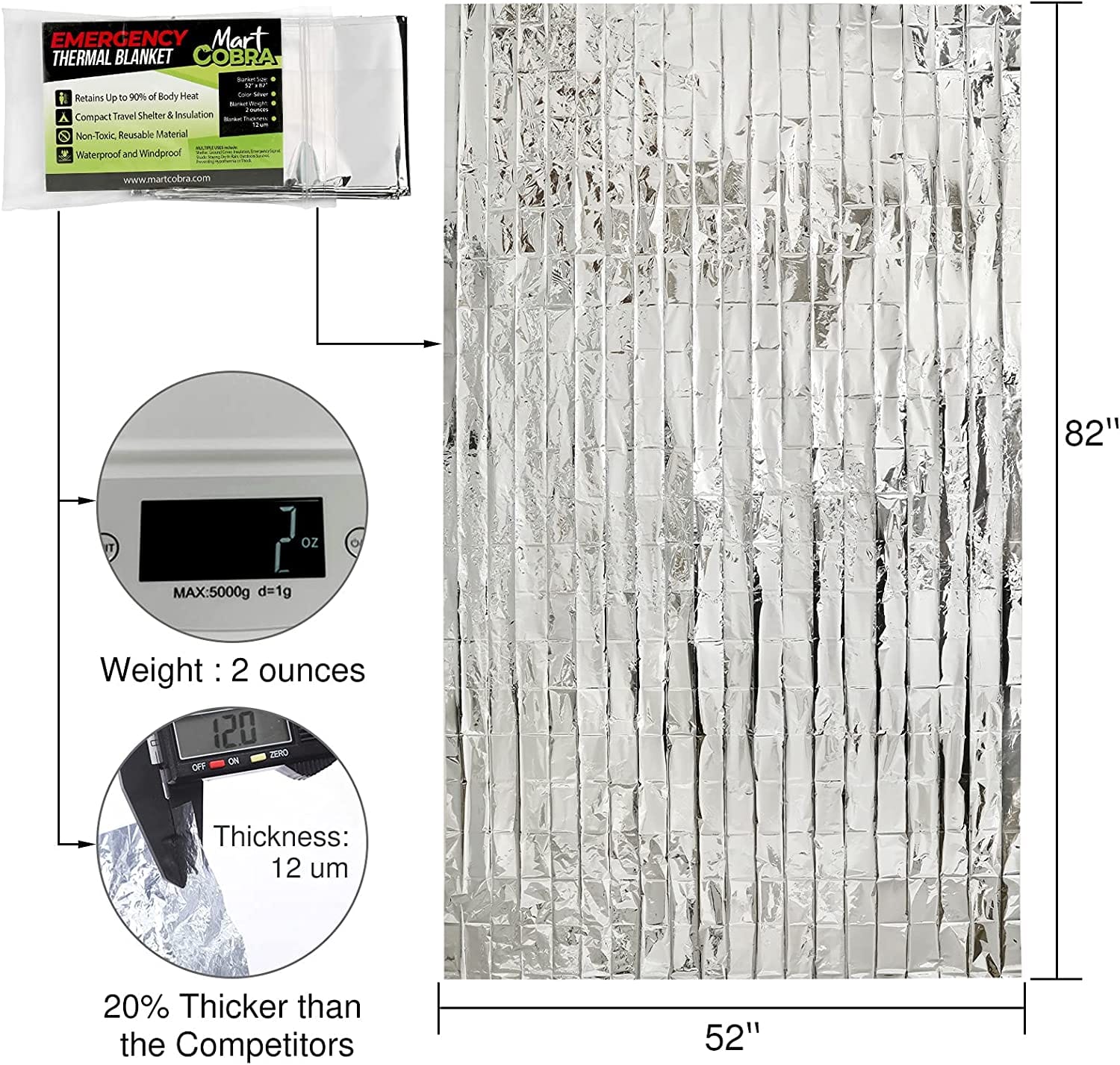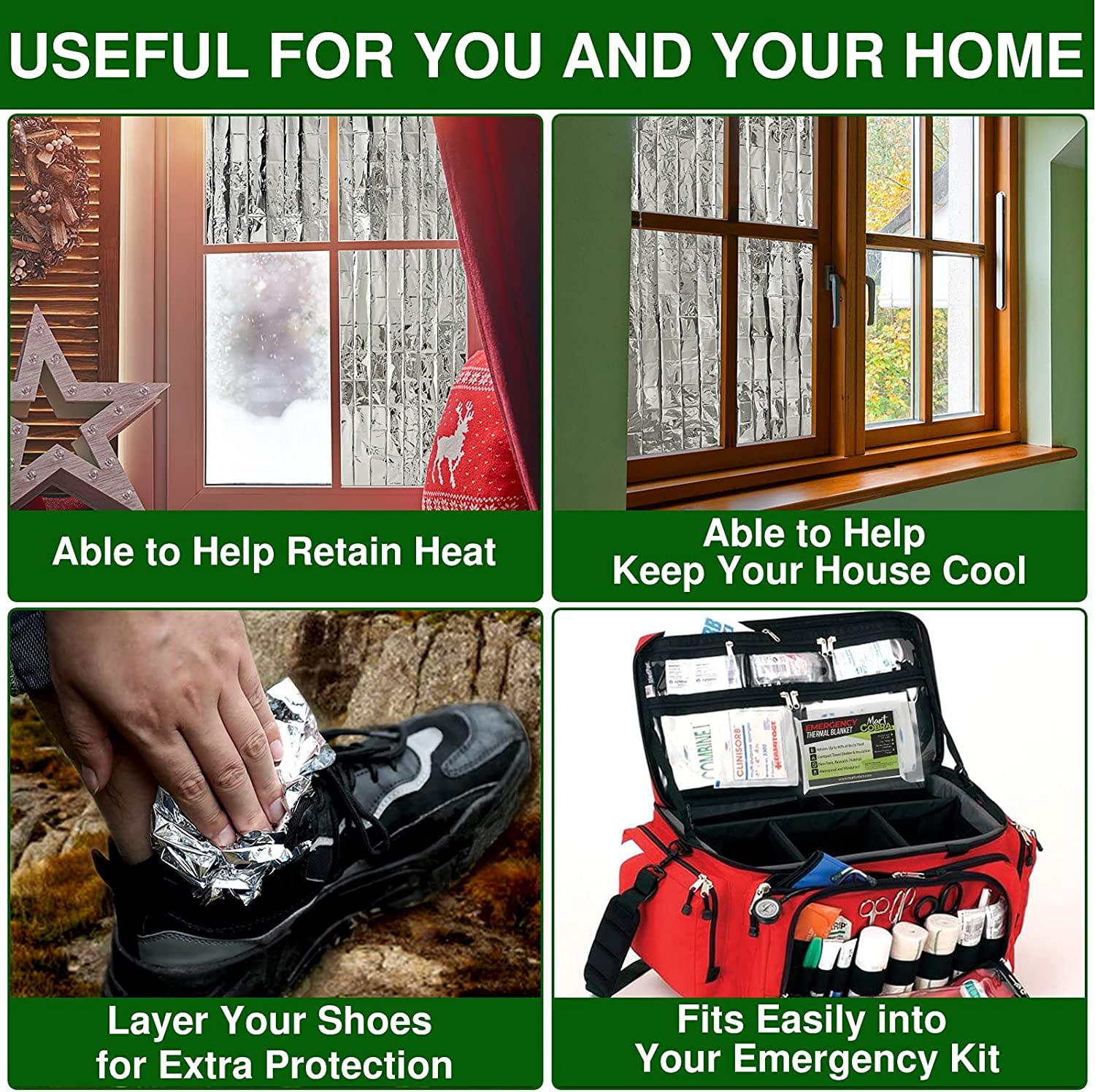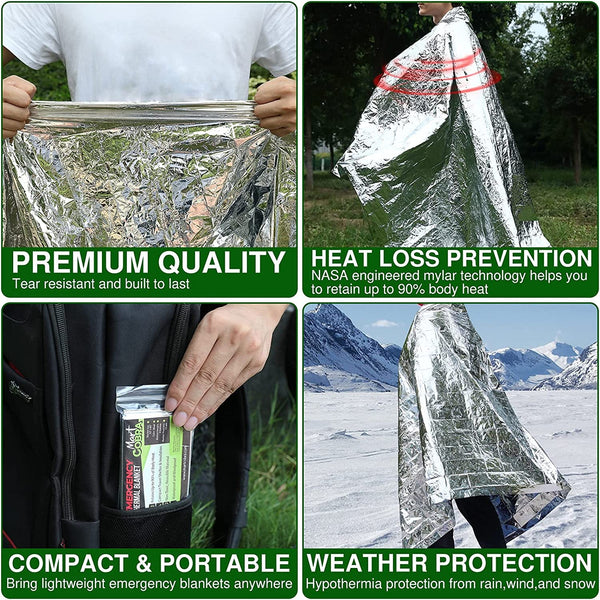 EMERGENCY THERMAL SURVIVAL BLANKETS -  Camping emergency blankets bulk 4 pack of large, aluminized emergency mylar thermal blankets. Emergency survival blanket foil blankets for warmth. Solar blankets emergency heat blanket survival blankets for outdoors. REFLECTIVE MYLAR EMERGENCY BLANKET PACK: Reusable mylar...View more
