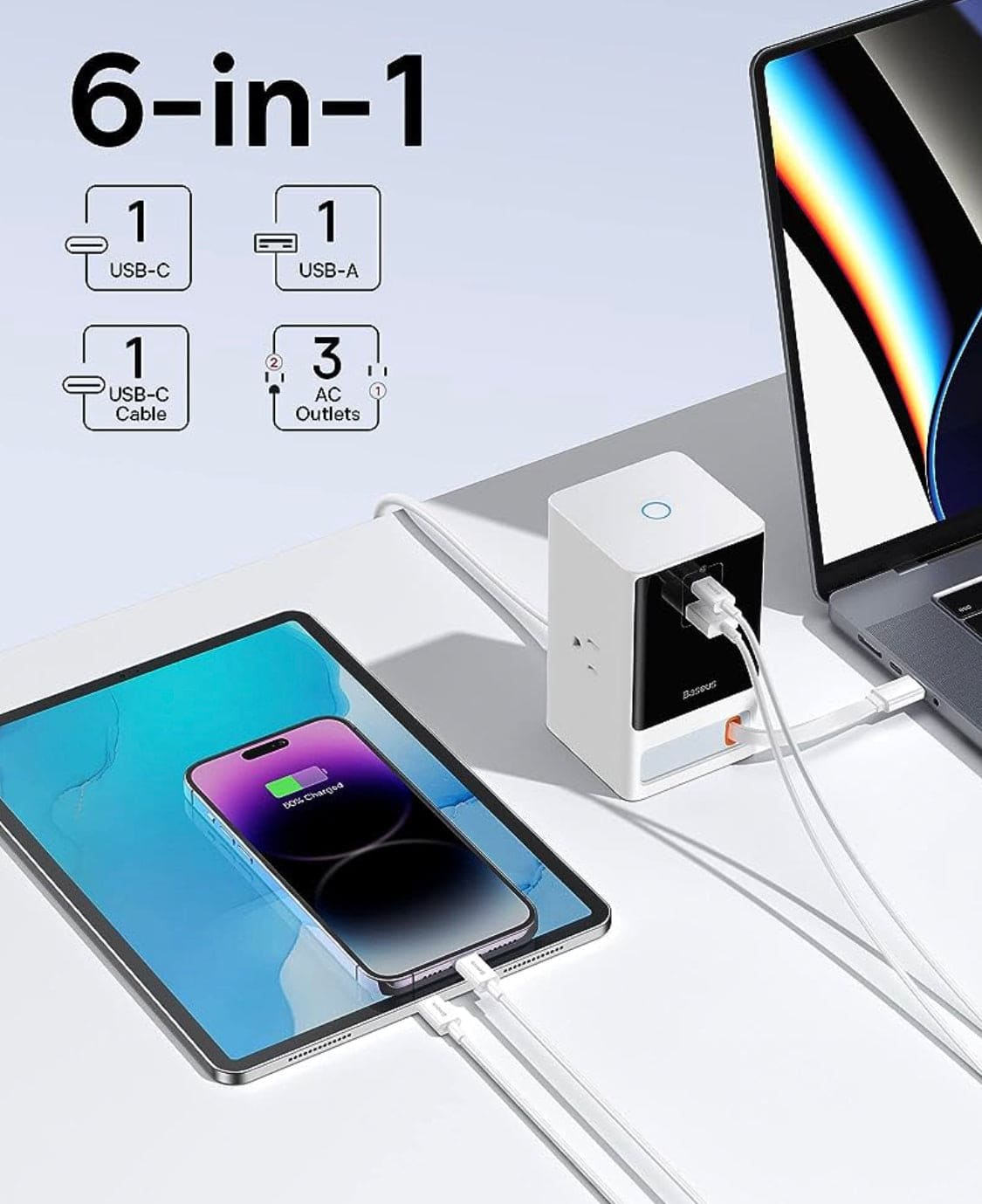 Better Choice: The PowerCombo charging hub replaces the need for a 5-port power strip, 3 USB chargers, and features a 65W fast-charging USB-C cable, helping you save money and maintain an organized workspace.Built-in Retractable USB-C Cable: With a built-in retractable...View more