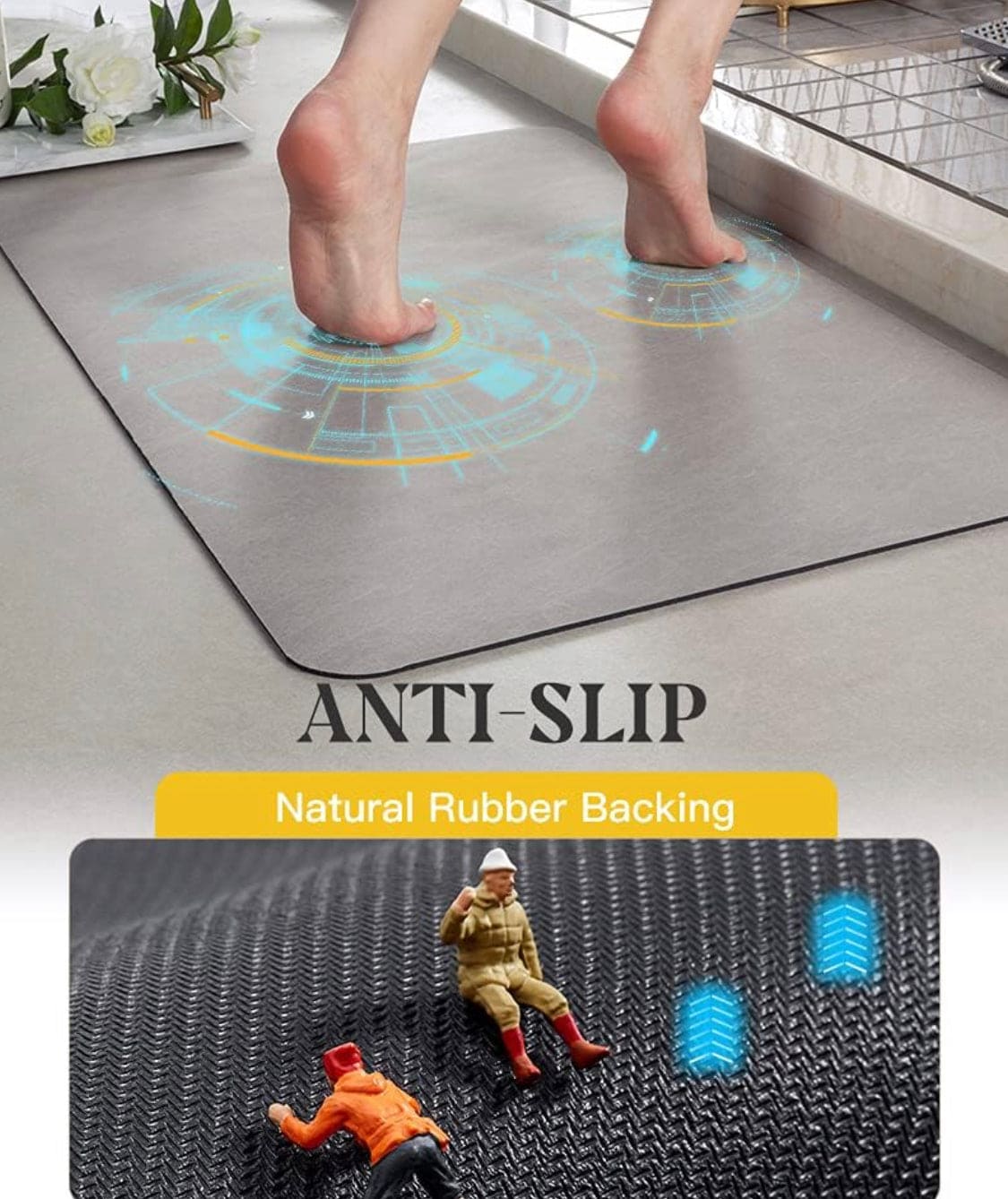 【Rapid Absorption & Swift Drying】Experience the plush variant of the diatomaceous earth bath mat. Within just 0.5 seconds of leaving the bathtub or shower, this bathroom rug efficiently soaks up excess water. Moments later, any watermarks vanish, leaving it dry as though it had never been wet.