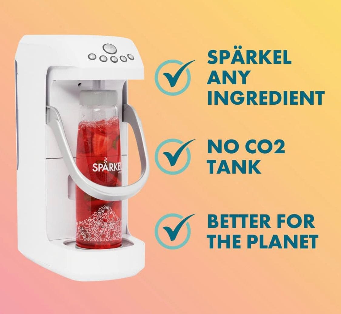 Experience the future of sparkling water with Spärkel - the revolutionary beverage system that eliminates the need for a CO2 Cylinder. Our new and improved models are now 33% faster, offering a new "Max" Carbonation Level, and feature enhanced bottle...View more