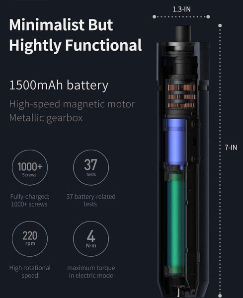 Embracing a minimalist yet highly functional approach, the screwdriver is equipped with a 1500mAH large capacity battery, which has undergone rigorous testing involving 37 battery-related assessments. This battery delivers exceptional endurance, enabling the screwdriver to drive more than 1000 screws on a full charge. The high-speed magnetic motor and metallic gearbox ensure a consistent and robust power output. Charging is hassle-free thanks to the universal Type-C interface.