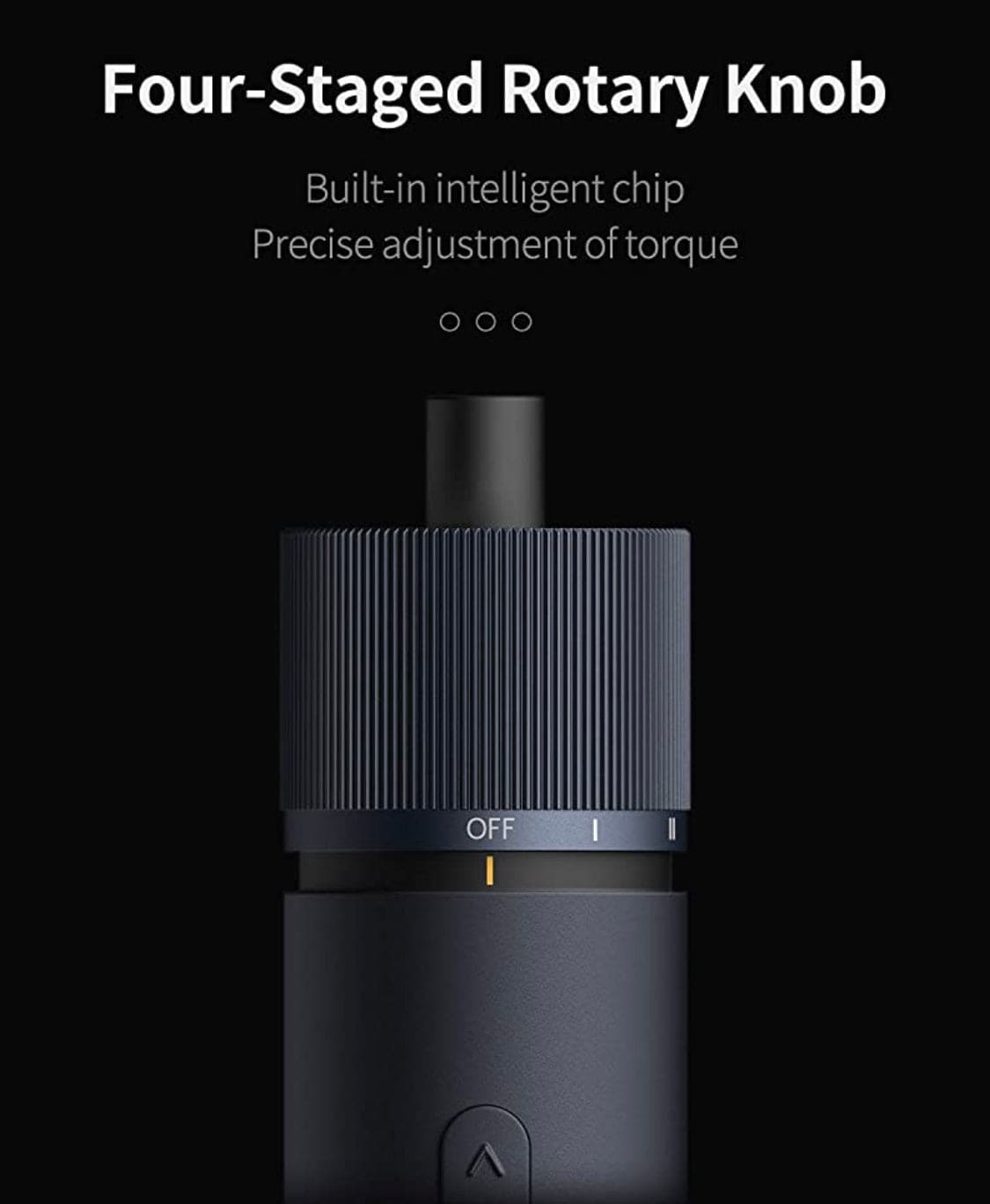 Navigating your tasks is made effortless with the screw-unscrew buttons and a circular LED shadowless lamp on the screwdriver. The lamp automatically turns off after 10 seconds of button release. Weighing a mere 0.55lb, the screwdriver features a double-layered soft grip crafted from high-strength plastic and TPE rubber, allowing for one-handed operation. The innovative four-staged rotary knob, coupled with a built-in intelligent chip, empowers you to precisely adjust the torque to suit a range of needs.